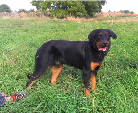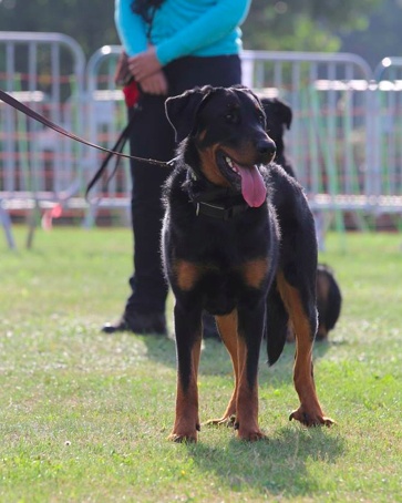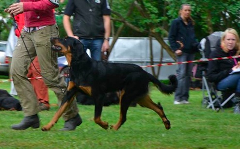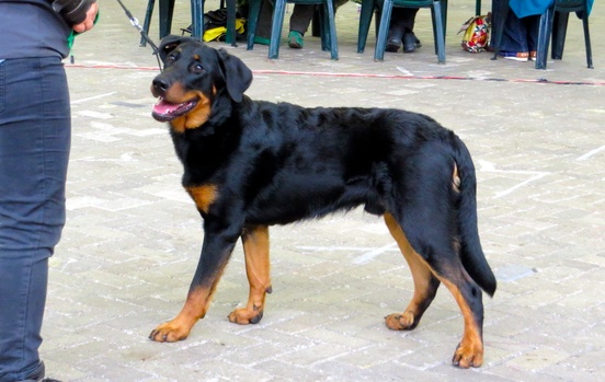 12 maanden oude, goed ontwikkelde maar toch jeugdige teef. Goede maat, fraai hoofd, goed parallel. Mooi oog, oor, gebit. Sterke hals, Goede bovenbelijning, lendenen vallen net in. Goed brand, krachtig gangwerk.